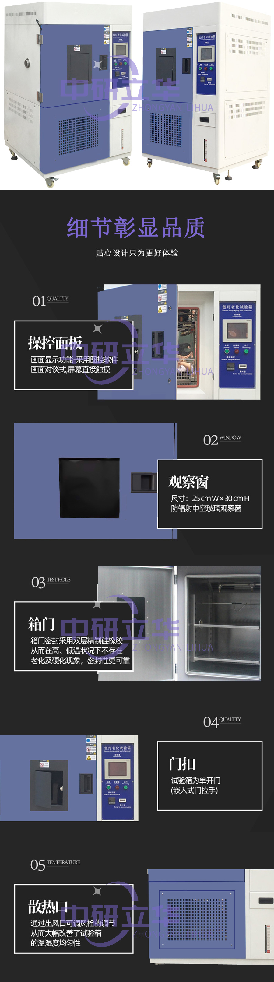 50人熟練工種,有10年以上試驗箱生產(chǎn)經(jīng)驗;核心零配件全部進口,ISO9001質(zhì)量體系,每道工序檢驗嚴格。