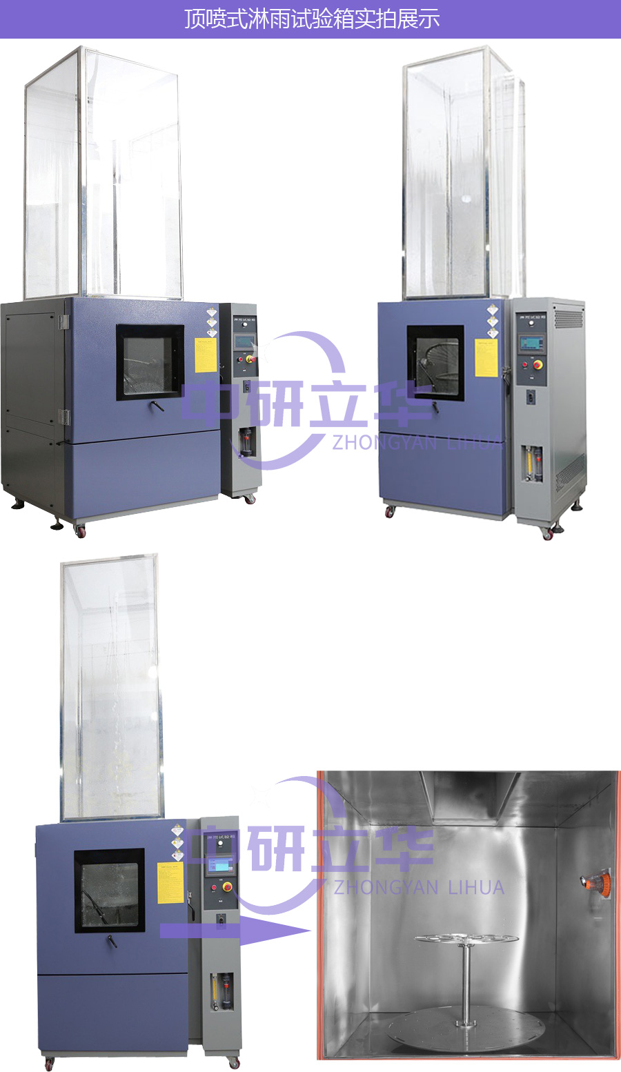 介紹:IP3-6頂噴式淋雨試驗(yàn)箱模擬噴水環(huán)境,用于考核電工產(chǎn)品,外殼和密封在淋雨環(huán)境下能否保證設(shè)備和元件良好性能的試驗(yàn)。